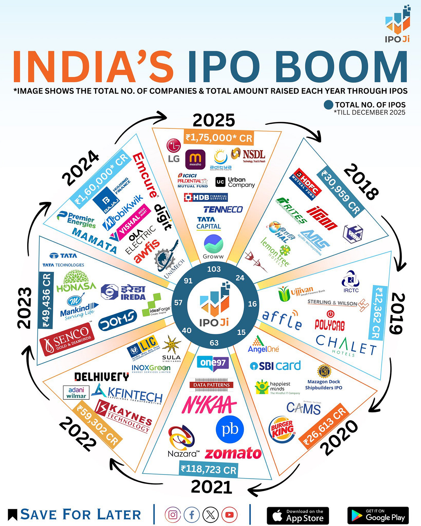 2025 also saw an extraordinary surge in equity supply. IPOs over 2024 and 2025 totalled roughly ₹3.4 trillion - nearly half of all capital raised in the previous 35 years combined. Another ₹3.5 trillion worth of draft papers are already filed.