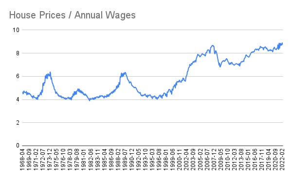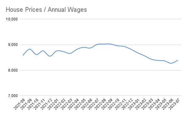 When I last wrote, in July 2022, the median house in the UK was trading at £288,156, while median wage was £31,789. This means that houses were trading at 9.01x wages.