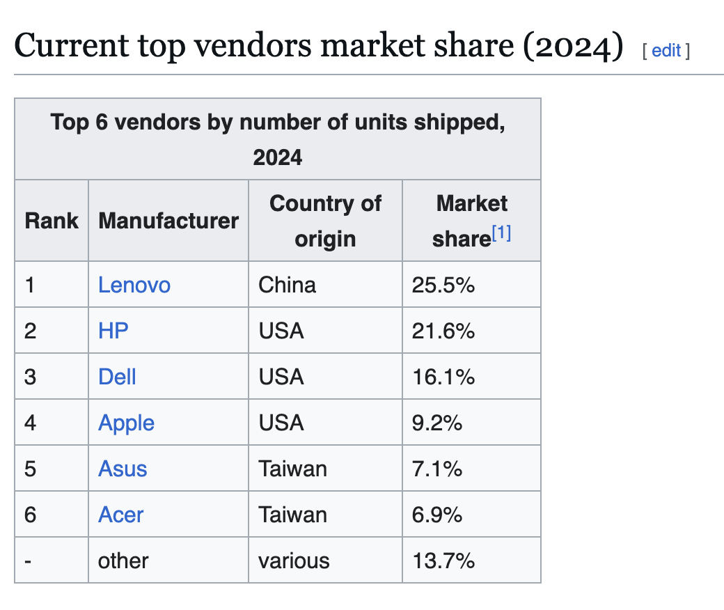 Yes, Lenovo is heavily exposed to China, but so are HP, Dell, and Apple. They all need to figure out how to navigate the tariff regime. Lenovo isn’t uniquely disadvantaged.