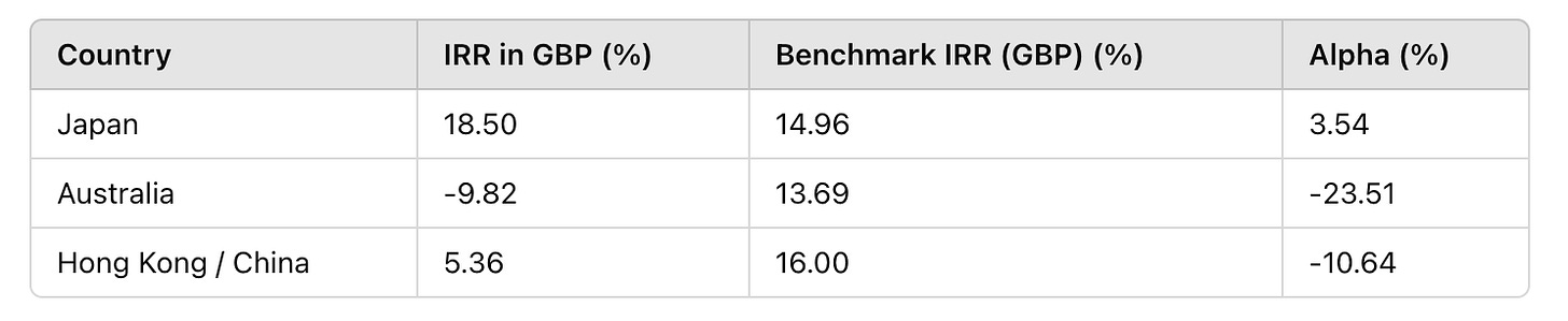 Do I stick with lower returns to maintain diversification or lean more heavily into the regions delivering alpha—namely the US and India? I haven’t decided yet, but I am actively thinking of addressing the large underperformance in underwhelming regions.