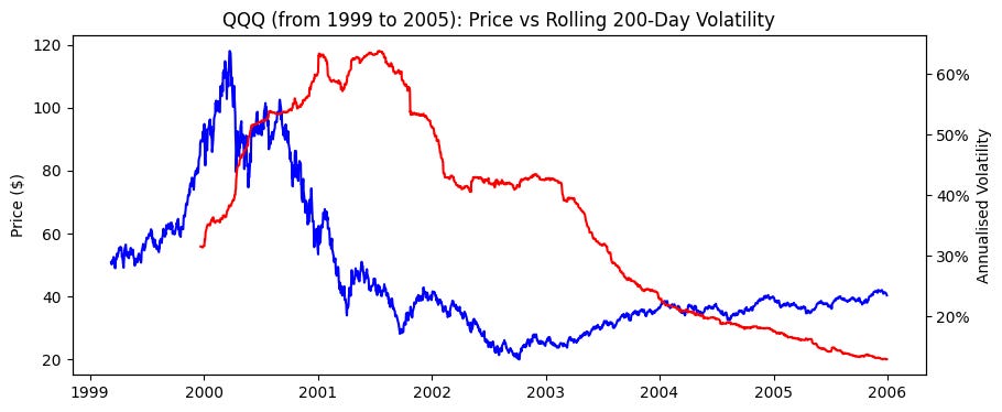 Put together, QQQ has clearly been an outstanding long-term investment. But it has also gone through extended periods of deep drawdowns, stagnation, and extreme volatility. The natural question is whether the volatility harvesting strategy survives those regimes.