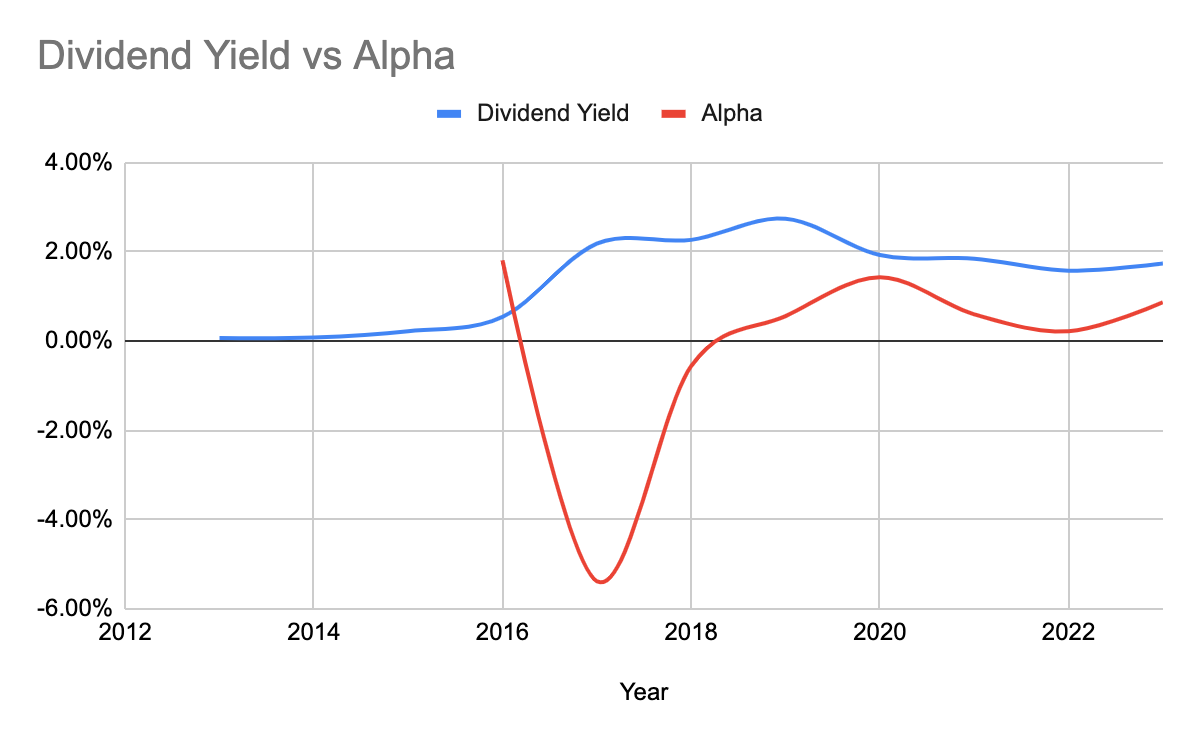 My alpha fell down significantly as I chased dividends. Bad idea! ❌