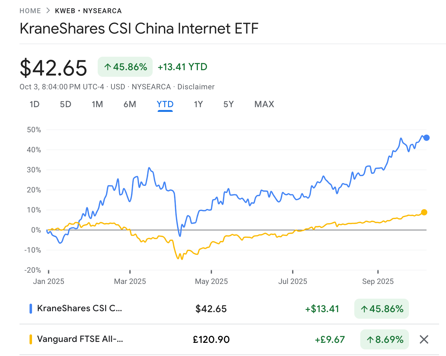 China was a surprise out-performer in Q3, continuing its quiet recovery from earlier quarters. Alibaba led the charge, with Tencent and NetEase following suit. This basket has long felt like punctuated equilibrium — long periods of dormancy, then sudden bursts of life.