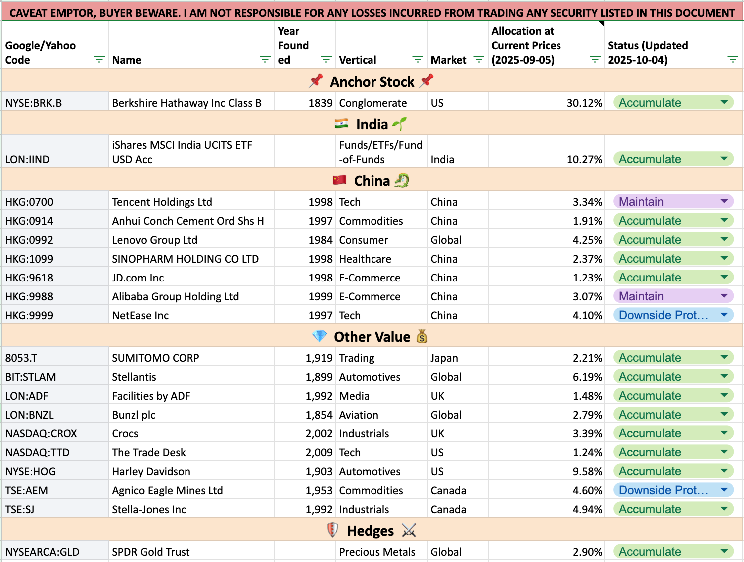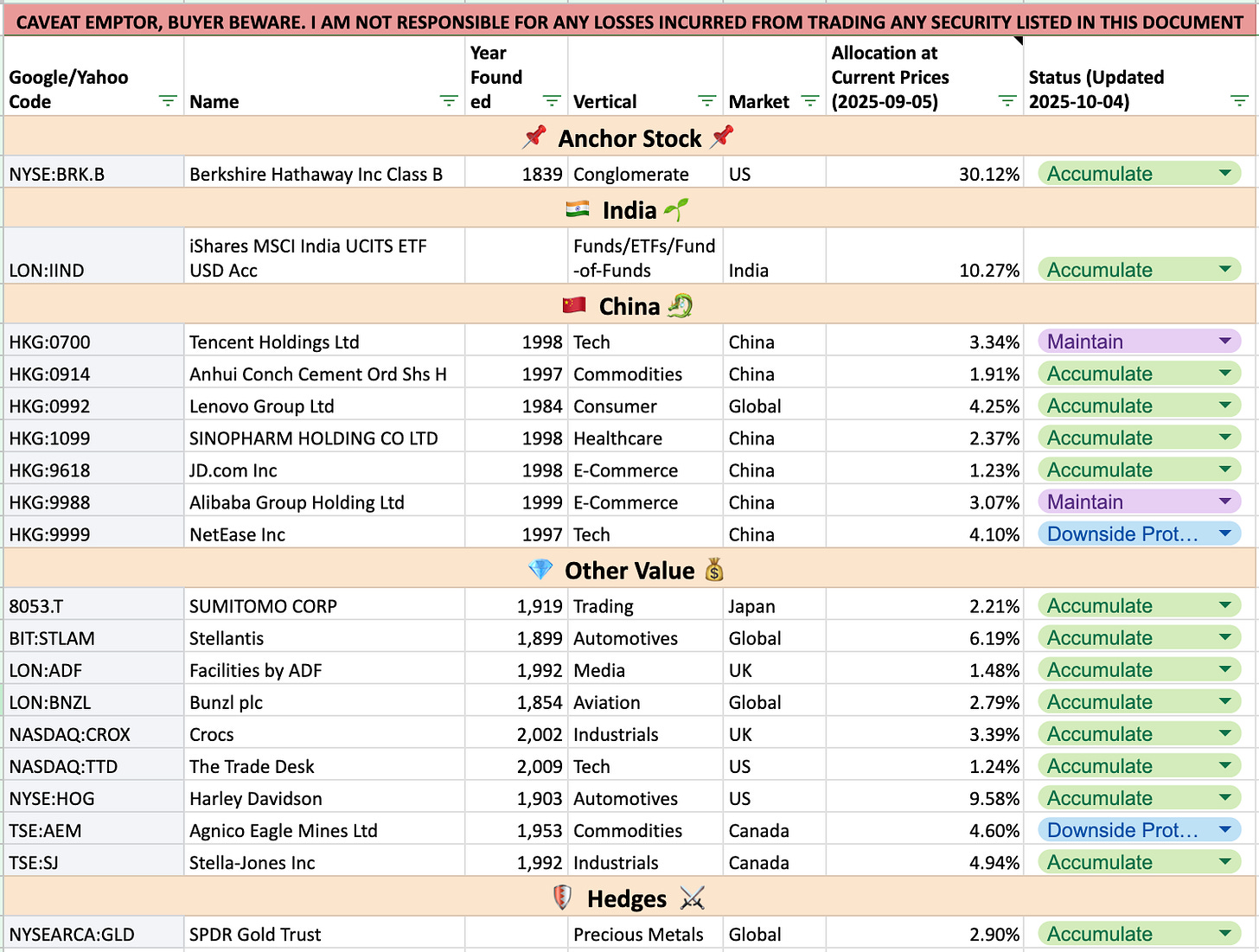 Even after this run-up, valuations remain modest- though NetEase looks close to being fully valued - I may add a stop-loss or protective puts there. Otherwise, this basket stays untouched. Sometimes the best move is no move.