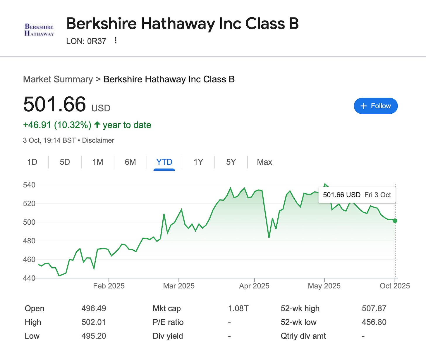 Berkshire continues to hum along. The stock had a roaring Q1 and has been hovering just below its all-time highs since.