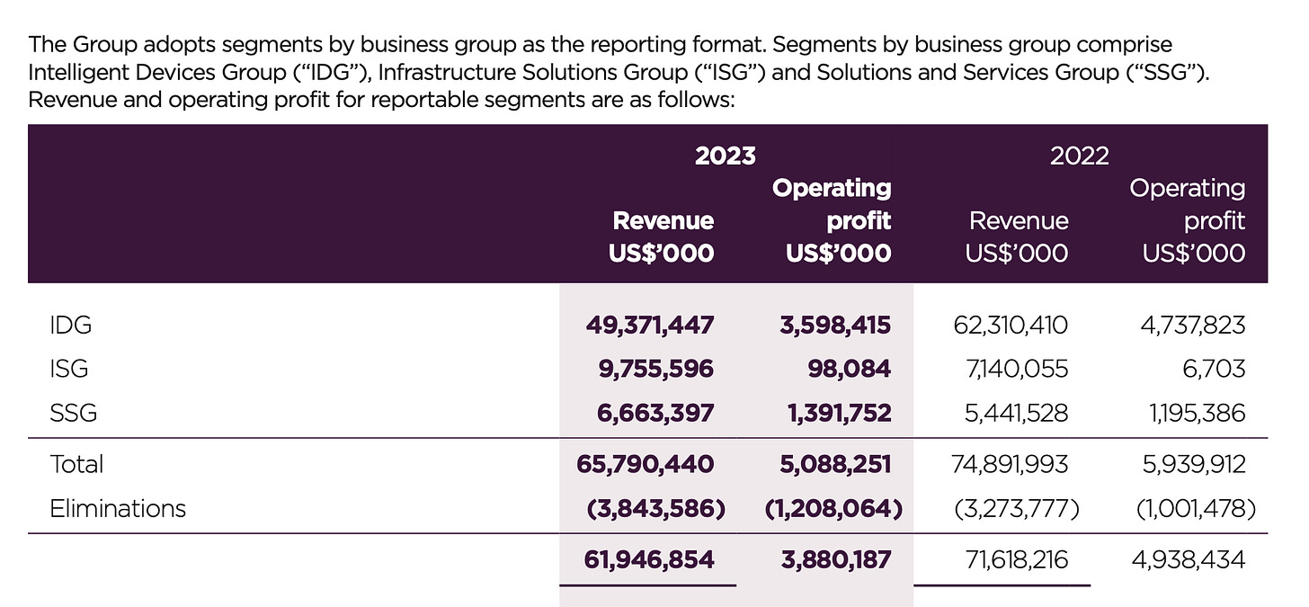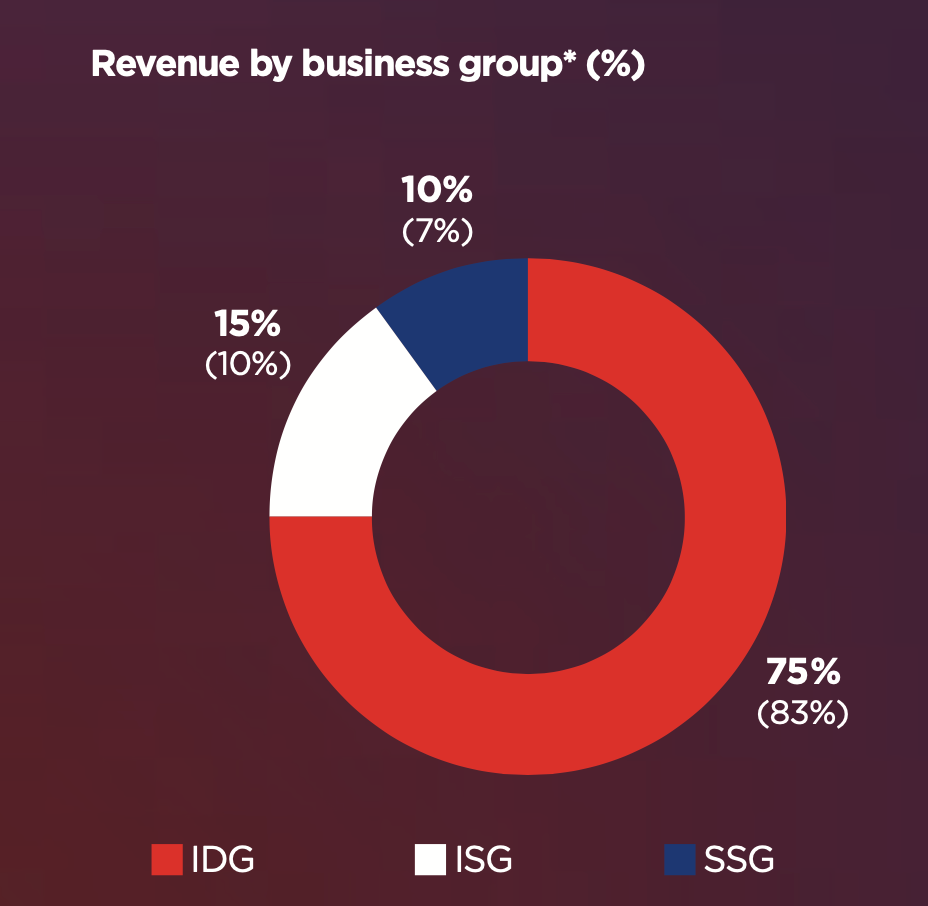 To bring us up to speed, the companyās 3 operating segments are Intelligent Devices Group (IDG), Infrastructure Solutions Group (ISG) and Solutions and Services Group (SSG).