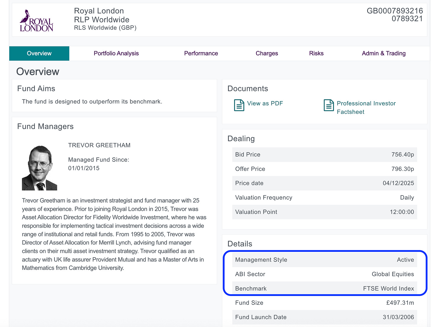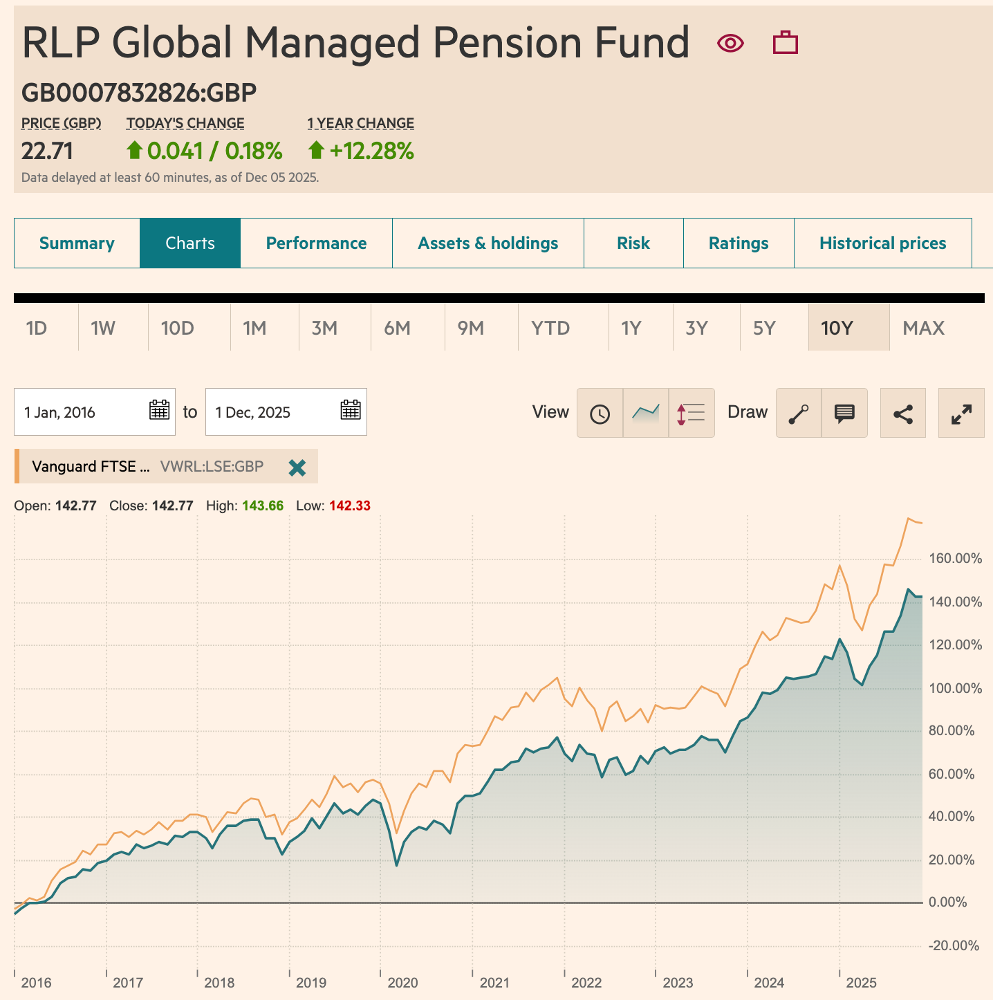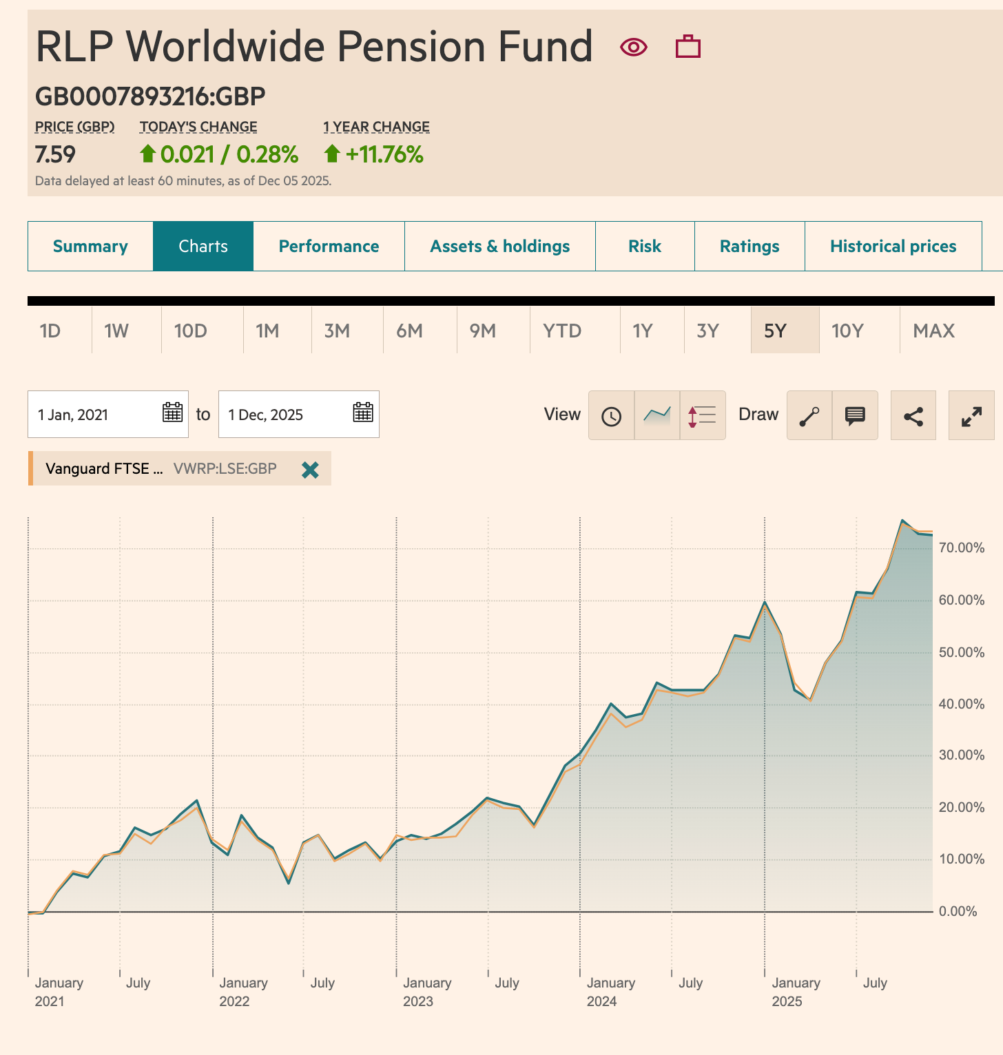 At this point, I was unconvinced that this was a good trade-off. So I went looking. After a bit of rummaging through Royal London’s investor site, I discovered an interestingly named alternative: RLP Worldwide.