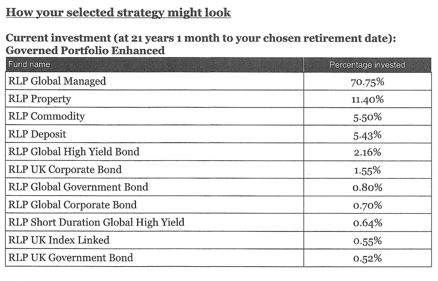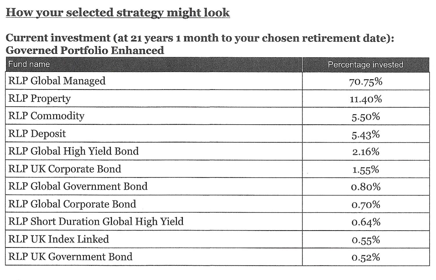 If my previous example was not convincing enough, allow me to present Exhibit B. Earlier this year, I switched jobs for the first time since moving to the UK. My new employer provides pensions through Royal London. Their default configuration for me looked like this:
