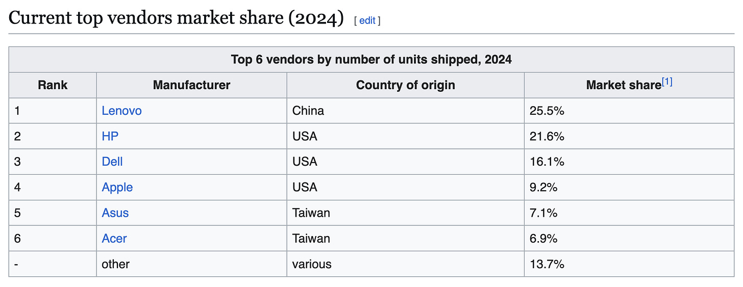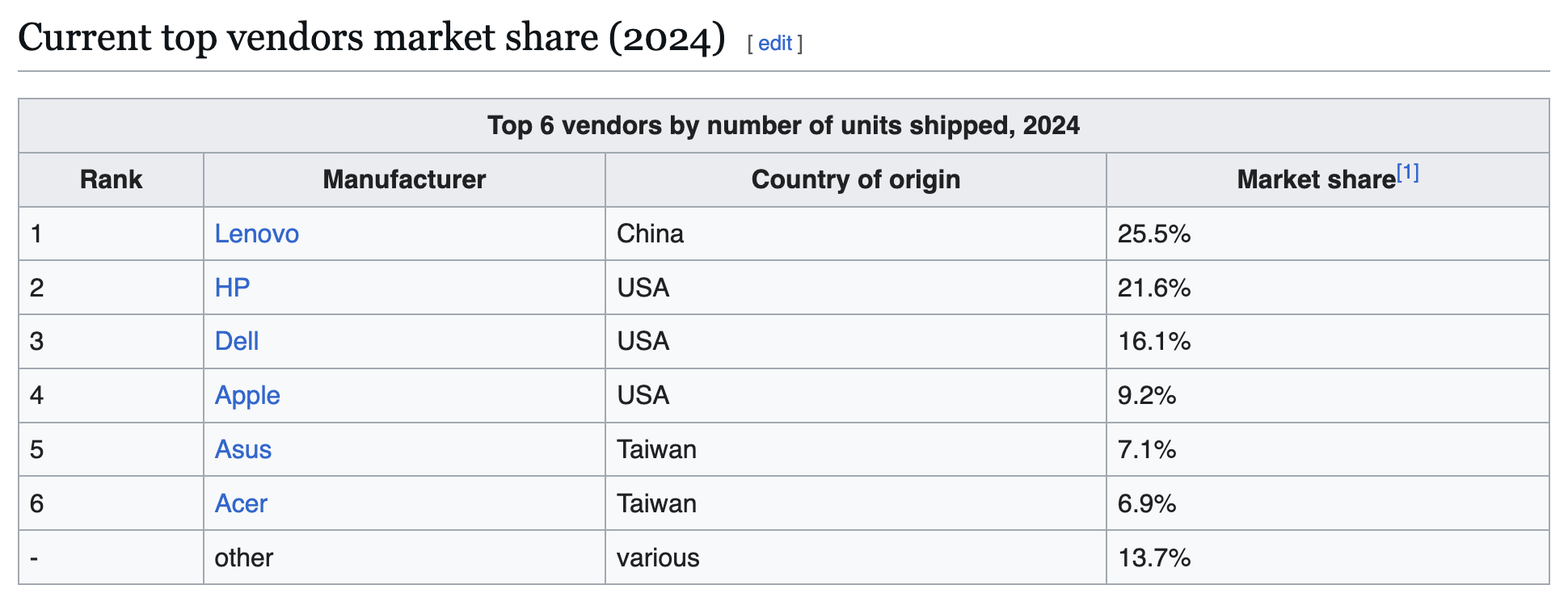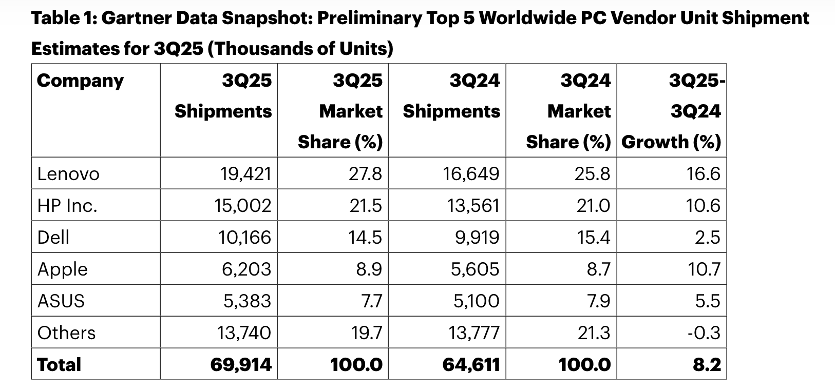 In fact, Gartner’s most recent data shows Lenovo gaining ground through 2025, with share climbing back toward 27–28% in the most recent quarter, driven by strength in both consumer and commercial segments.
