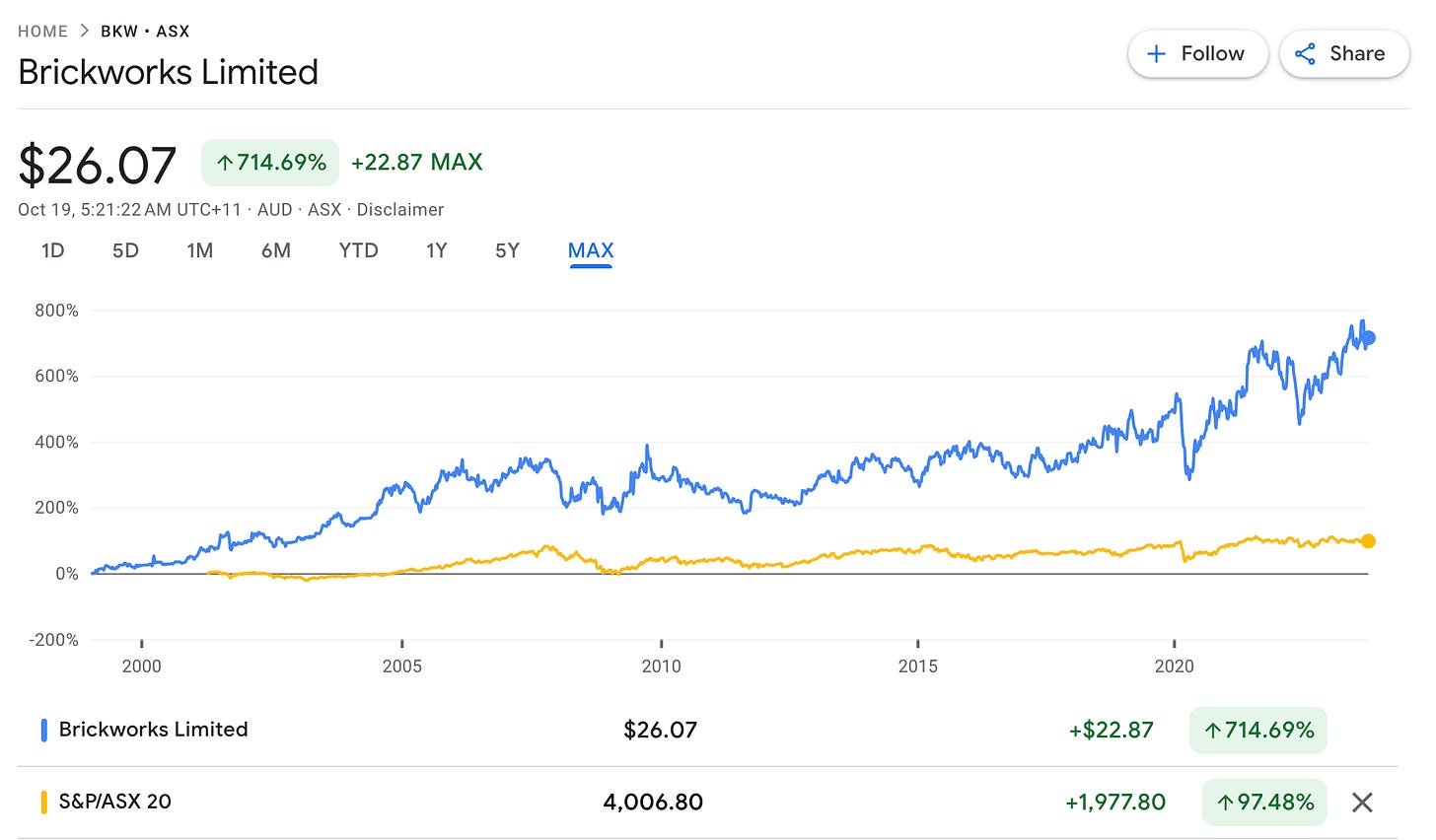 I haven’t written about a company in the portfolio since PetMed Express in early September. Getting company analyses back on track, I am going to cover Brickworks Limited (ASX:BKW) today. Within my portfolio, Brickworks has so far generated a handsome return of 19.7% (AUD basis) / 14.79% (GBP basis) on an annualised basis, currently ranking among the 6th in total returns in my portfolio and has handsomely beaten the market returns over the past multiple years. It is worth taking a look at what the magic is about.