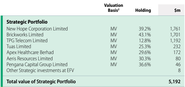 Brickworks holds 94.3M shares in Washington H Saul Pattinson company, shortened to WHSP, but listed on the ASX as SOL. WHSP/ASX:SOL is an investment company that holds a bevy of investments across multiple asset classes - Strategic Holdings, Large Cap equity, Private Equity, Structured Yield, Emerging Companies etc. A full analysis of WHSP/ASX:SOL is outside of the scope of this blog post. However, we need to understand the basics of this asset and assign some value to it.
