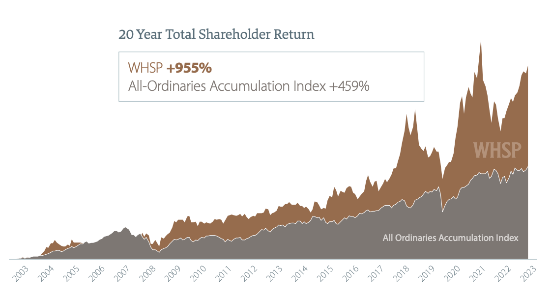 WHSP has beaten the ASX all shares ordinaries over both 20 and 40 year time periods.