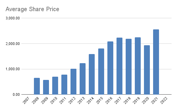 The only problem with the stock is that it is not cheap. It normally trades around the 20 P/E mark, and has consistently traded between 18-30x P/E over the past 10+ years. The last time you could get hold of this business relatively cheaply (<15x P/E) was before 2012. So, the market realises the strength of the business and is willing to accord it the respect, but leaves little margin of safety for the new buyer.