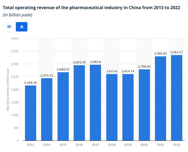 The industry was about RMB 2,100 Bn in 2013 and about RMB 3,400 Bn in 2022, compounding at 5.5% p.a. In this demographic tailwind we find Sinopharm as a well operated business to bet on.