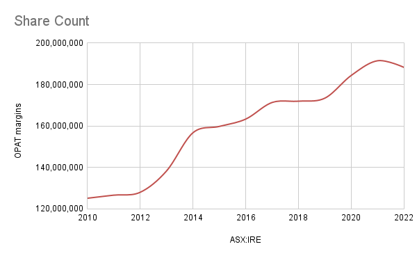 In the 11 years from 2010 to 2022 (both years inclusive), Iress has been steadily generating both profits ($4.31 per share) and Free Cash Flow ($6.28 per share) and returning cash to shareholders ($5.54 per share).